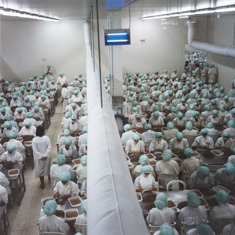 Yto Barrada, Factory 1, shrimp peeling in a facility in the Free Trade Zone, Tangier, 1998.